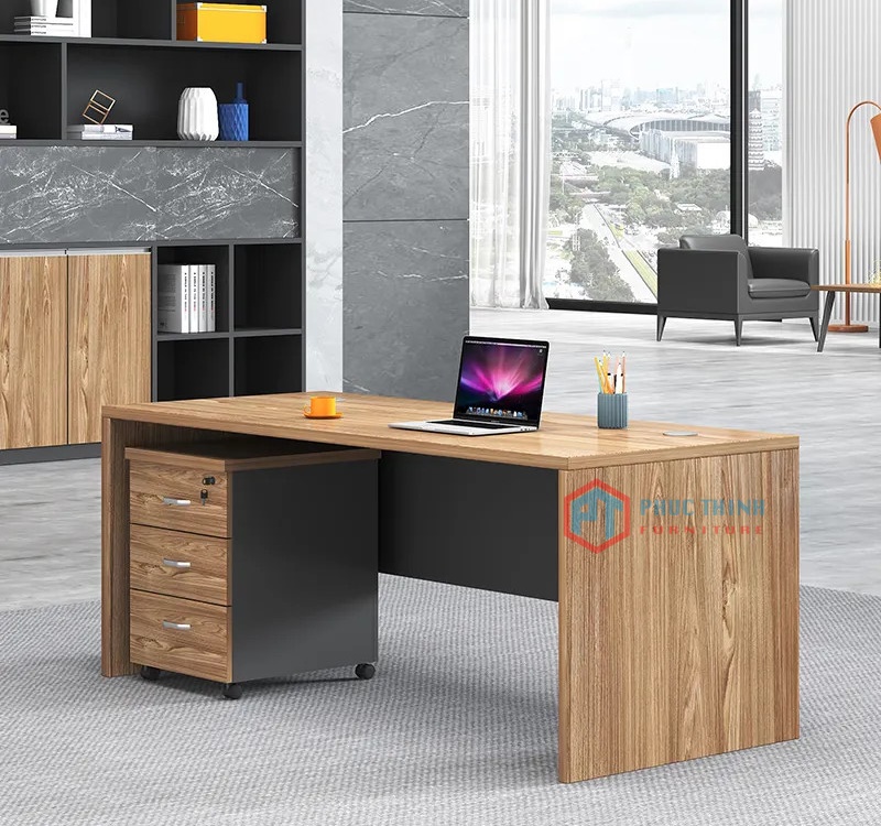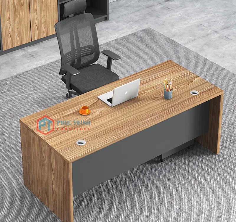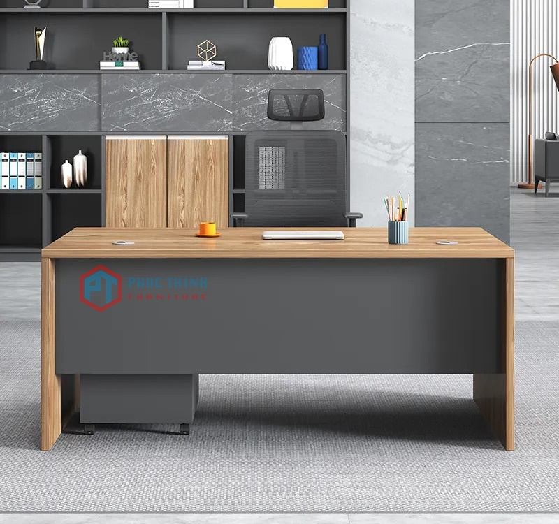 Bàn giám đốc BGDPT 11 thiết kế chủ đạo với tông màu nâu vân gỗ hiện đại, một bên chân bàn thiết kế theo tông trắng thanh lịch tạo cảm giác tối giản chuyên nghiệp. Sản phẩm thích hợp sử dụng trong không gian văn phòng hiện đại, trang nhã lịch sự.