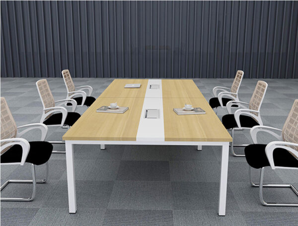 Kích thước 3600x1200x750 Chất liệu Gỗ Mdf phủ melamine. Chân sắt sơn tĩnh điện Màu sắc Quý khách tùy chọn màu Phụ kiện Nắp nhựa mặt bàn Giao hàng Sau 2-5 ngày đặt hàng Bảo hành 12 tháng Bàn họp BHPT 01 thiết kế khung sơn tĩnh điện, mặt bàn hình chữ nhật làm từ gỗ MFC phủ Melamine chống mối mọt, ẩm xước. Tông nâu vân gỗ xen kẽ trắng thanh lịch, hiện đại, tôn lên phong cách năng động, trẻ trung của không gian công sở.