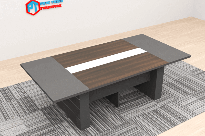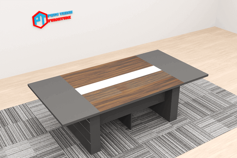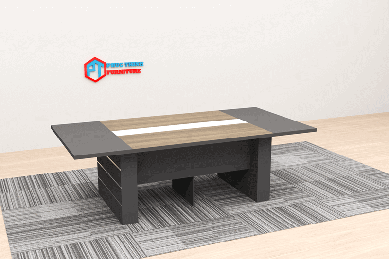 Kích thước 2400x1200x750 Chất liệu Gỗ Mdf phủ melamine. Màu sắc Quý khách tùy chọn màu Phụ kiện Nắp nhựa mặt bàn Giao hàng Sau 2-5 ngày đặt hàng Bảo hành 12 tháng Bàn họp BHPT 15 thiết kế trẻ trung, tông đen - nâu trầm tạo cảm giác chuyên nghiệp phù hợp với môi trường làm việc hiện đại, năng động. Sản phẩm thiết kế chắc chắn, có nắp bàn đựng dây cáp, dây điện tiện lợi, thẩm mĩ.