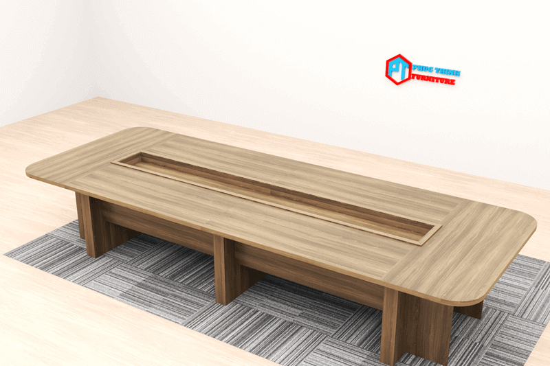 Kích thước 4000x1400x750 Chất liệu Gỗ Mdf phủ melamine. Màu sắc Quý khách tùy chọn màu Phụ kiện Nắp nhựa mặt bàn Giao hàng Sau 2-5 ngày đặt hàng Bảo hành 12 tháng Bàn họp BHPT 19 thiết kế chắc chắn, làm từ gỗ MFC cao cấp phủ Melamine giúp tăng độ bền của sản phẩm nhờ khả năng chống mối mọt, trầy xước hiệu quả. Sản phẩm tông nâu vân gỗ, thiết kế sang trọng, chắc chắn.
