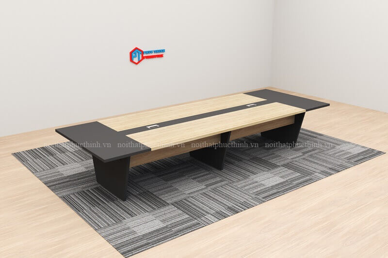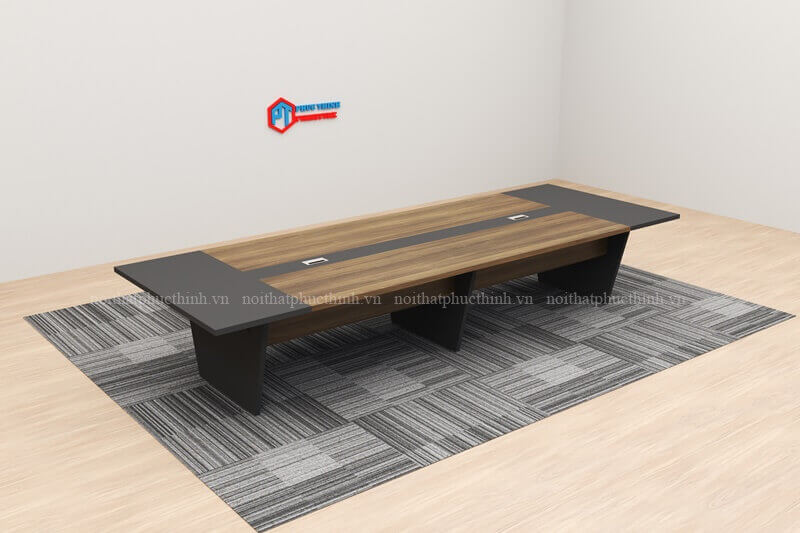 Kích thước 4000x1400x750 Chất liệu Gỗ Mdf phủ melamine Màu sắc Quý khách tùy chọn màu Phụ kiện Nắp nhôm luồn dây điện Giao hàng Sau 2-5 ngày đặt hàng Bảo hành 12 tháng Bàn họp BHPT 21 thiết kế sang trọng, bắt mắt. Mặt bàn có nắp nhôm luốn dây điện tiện lợi, làm từ gỗ MDF phủ Melamine cao cấp chống mối mọt, ẩm mốc, trầy xước hiệu quả.