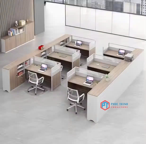 Bàn làm việc chữ hiện đại liền tủ CUMPT 38