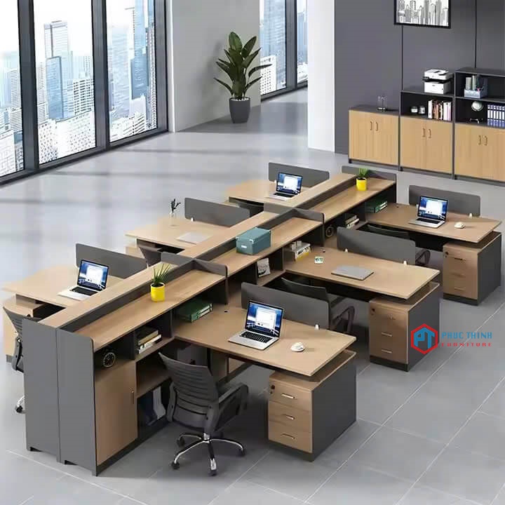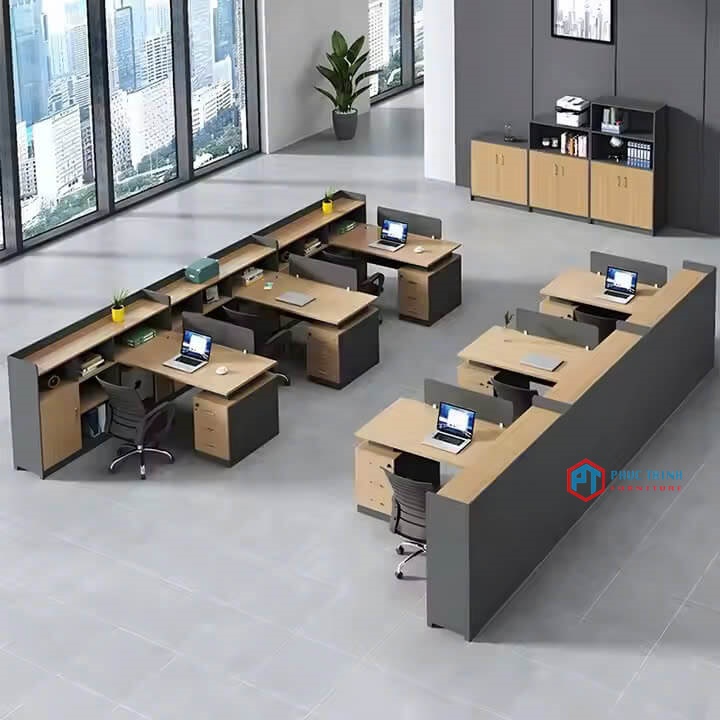 Nội Thất Phúc Thịnh nhận thiết kế và thi công module bàn làm việc theo kích thước, chất liệu và màu sắc riêng theo yêu cầu doanh nghiệp!