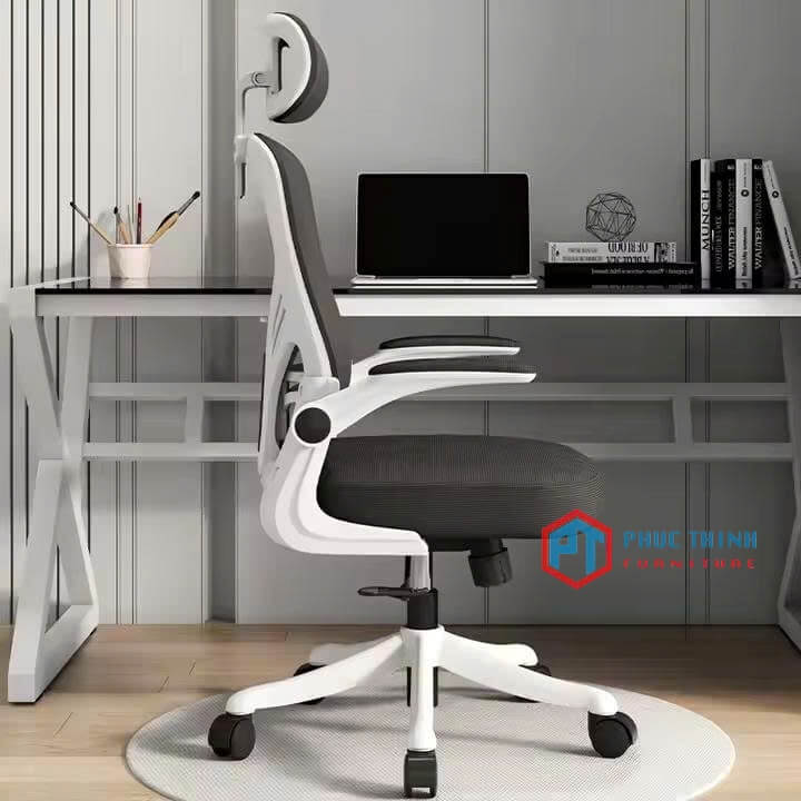 - Tay ghế 4D: lên-xuống, trước-sau, xoay trái-phải, thu gọn dưới mặt bàn.