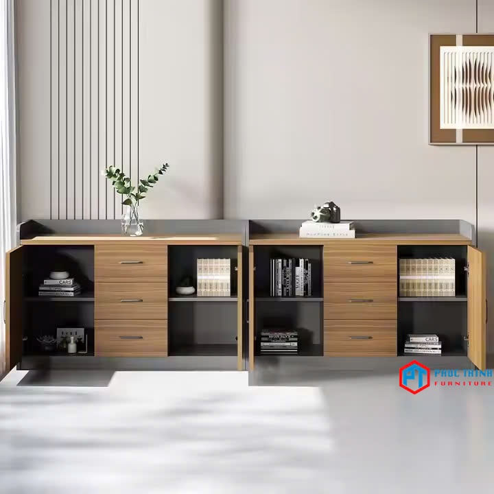 Tủ hồ sơ văn phòng TTLPT 09 có màu sắc phong phú, từ các tông màu gỗ tự nhiên như nâu sậm, vàng nhạt đến các gam màu hiện đại như trắng, xám, đen. Thiết kế tối giản với đường nét gọn gàng mang lại vẻ đẹp sang trọng, chuyên nghiệp, phù hợp với nhiều phong cách nội thất văn phòng.