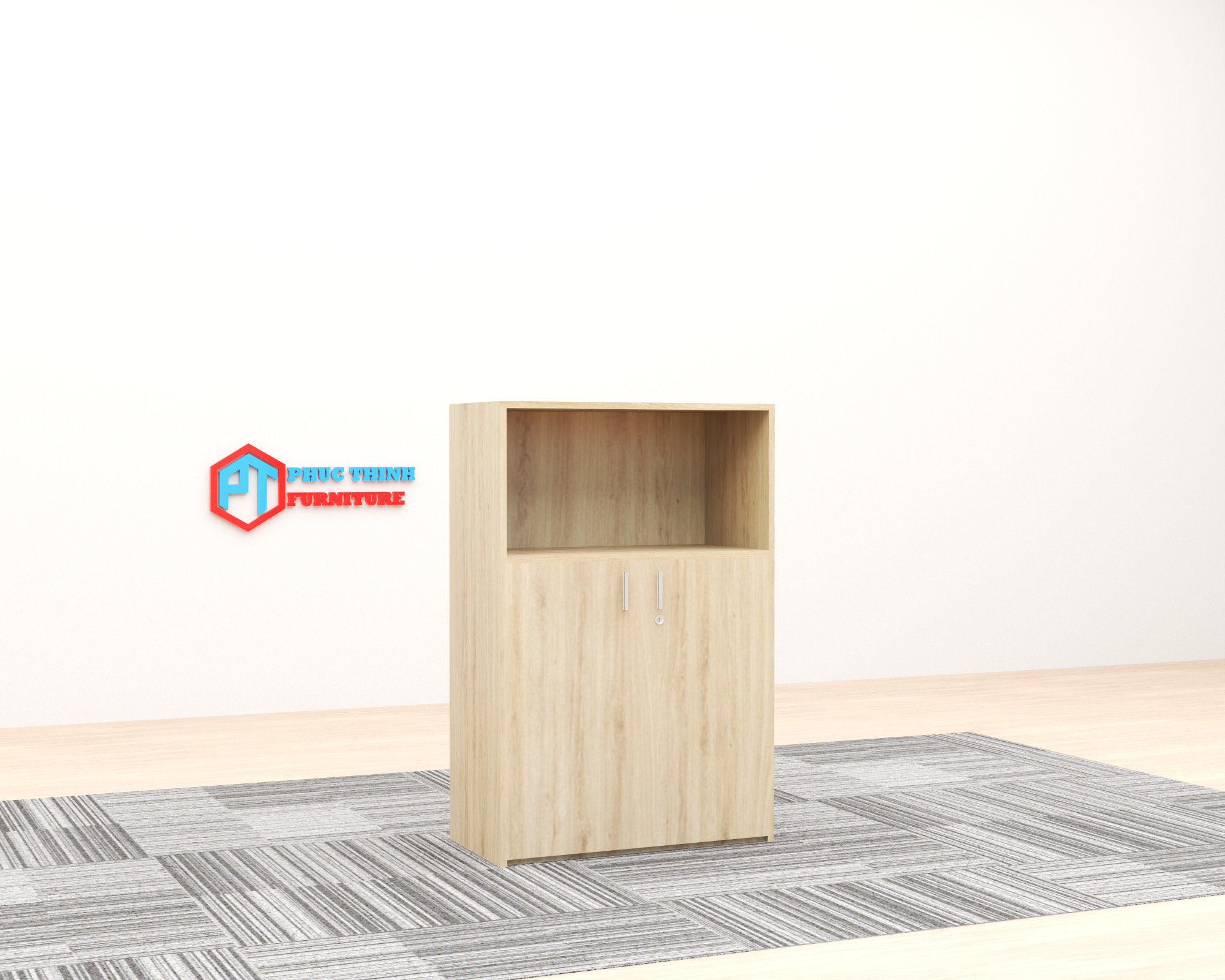 Tủ được thiết kế cánh lửng, ngăn phía trên có thể để tài liệu hoặc thiết bị như máy in hoặc điện thoại.
